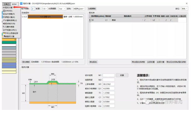 华秋DFM还支持阻抗计算,更进一步方便前期设计时的走线约束和后期的设计文件检查。此外还有很多其他功能,公众号后台回复DFM,可以得到更多教程资料。