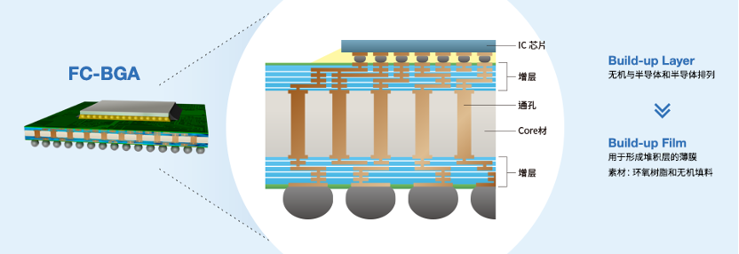 其实在芯片集成度越来越高,纷纷走向SoC化后,IC基板往往也在走向高端,在FC-BGA封装的芯片上,往往采用的都是ABF基板。目前