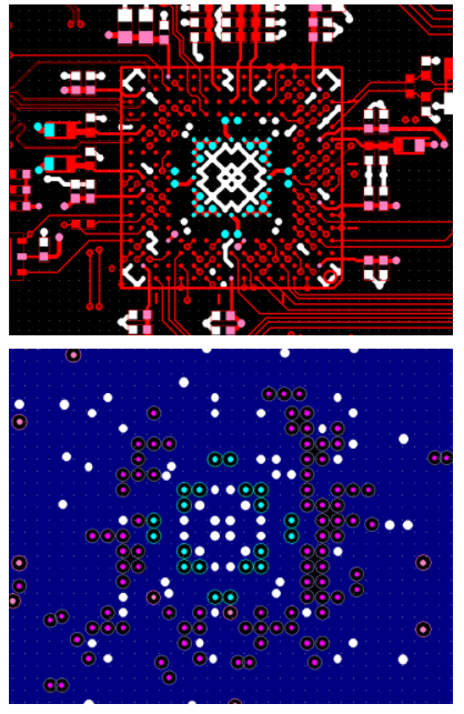注意电源与地层的完整性,避免出现导通孔密集区域,破坏平面层的完整性;