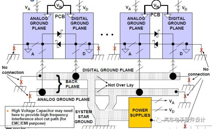 星形接地-分离的模拟和数字地平面