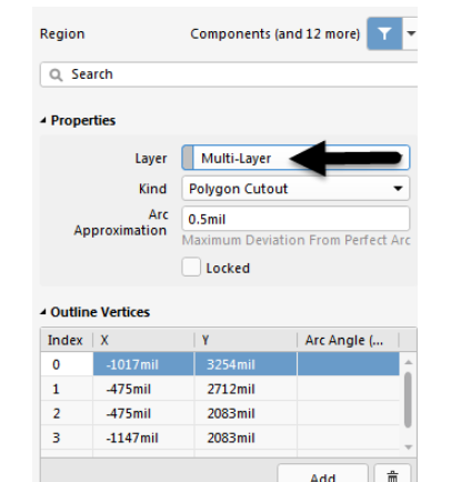 图9多边形铺铜挖空属性设置修整铺铜铺铜不可能一步到位,在实际应用中,铺铜完成之后,需要对所铺铜的形状等进行