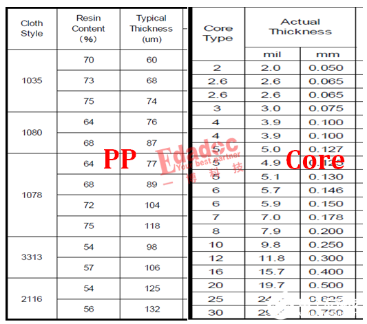 这两种叠层有什么不一样吗?不就是用不一样的PP和CORE来凑够厚度吗?如果你们算阻抗的话,你就会发现它们最大的区别了。