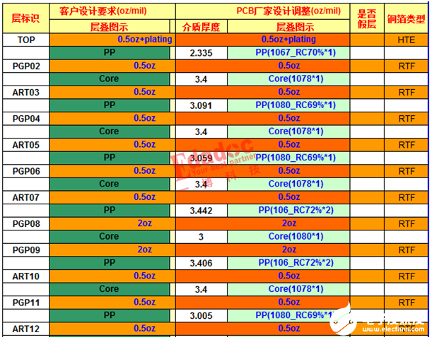 B、在层叠信息表里面定义PP或core类型、RC含量及厚度等,下表2的叠层就缺少了RC含量。