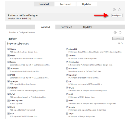 EDA软件中Altium Designer的兼容性是最好的,在其他EDA平台设计的原理图、PCB等文件,有时候会统一到Altium Designer平台,或者将在Altium Designer平台设计的文件导入其他平台,这种时候需要用到导入导出的功能。Altium Designer提供了丰富的插件安装功能,因为导入导出插件使用次数最多,这里详细给读者介绍怎么安装导入导出插件,如需要其他插件,安装方法类似。