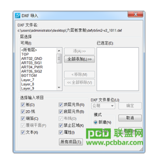 l第四步,导入单位选择 公制,所有DXF层,全部勾选上即可。
