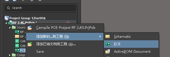 1.再工程里新建一个PCB文件,名字可以任意,我一般都是配合单板PCB写上拼板类似的字样。