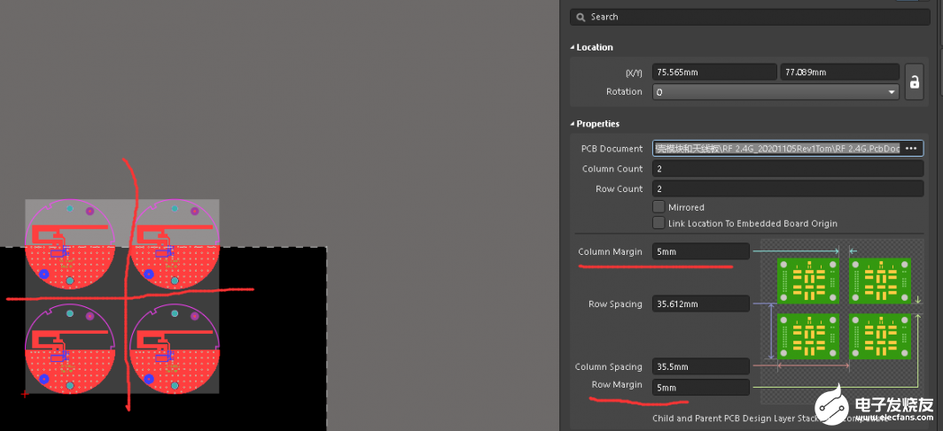 那我们再画板子的时候,如何操作呢?当然少不了利器:拼板阵列。它最大的好处就是方便,不管单板PCB怎么变化,都不用重新拼板,好贴心。