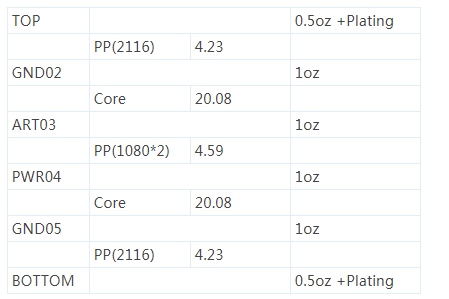 特性阻抗,体现在PCB板上,主要是通过叠层、线宽、线距。在PCB版图布局完成以后,我们要对PCB板进行层叠设计,将PCB板按照一定的厚度叠好以后,根据层叠结构,通过SI9000这个软件来进行阻抗线宽的计算,然后根据计算好的线宽来进行布线,即可达到控制特性阻抗的效果。如图1-21所示,1.6MM的厚度的PCB板的层压结构。