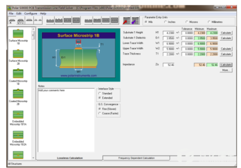图1-22 单端50欧姆表层所走线的线宽