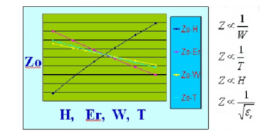 一般来说,介质厚度、线距越大阻抗值越大;介电常数、铜厚、线宽、阻焊厚度越大阻抗值越小。这些因素与特性阻抗的关系如图1-20所示。