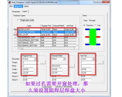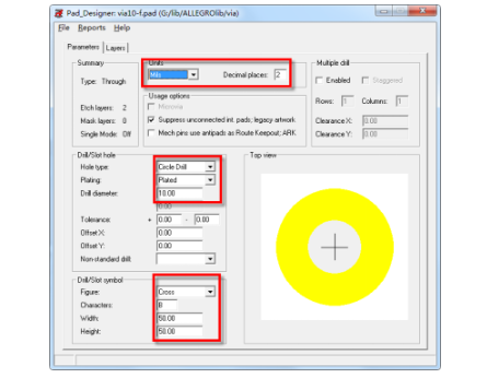 第二步,打开Pad_Designer,按以下参数新建好过孔,如图4-109所示,设置钻孔参数,如图4-110所示,设置焊盘参数,然后保存即完成过孔制作。