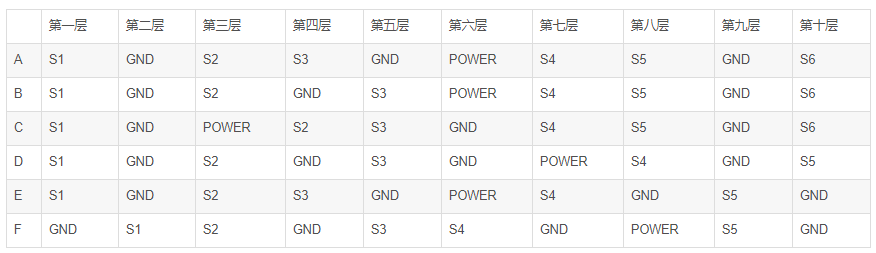 注:S1 信号布线一层,S2 信号布线二层;GND 地层 POWER 电源层