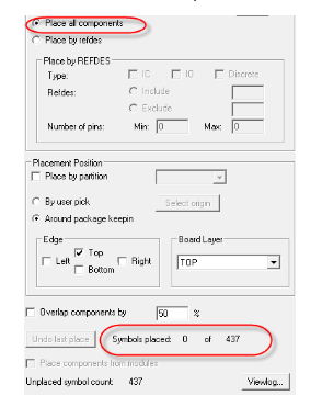 第四步,在弹出的界面中,如图6-39所示,在Placement Fillter选项中选择Place all component放置所有的元器件,在Edge中可以选择放置的位置,在Board Layer可以选择放置的层,然后,点击OK,放置元器件;