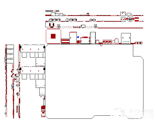 第五步,放置器件完毕之后,如图6-40所示,放置在PCB板框的左侧跟上侧,这样以后,整个PCB的元器件就全部放置到PCB板上了。
