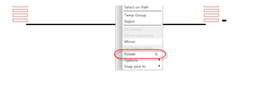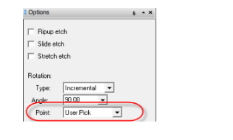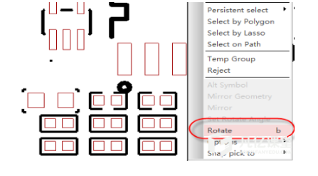 第二步,按照上述参数设置对Find面板以及Options面板进行设置以后,框选所有需要旋转的元素,选完以后,在点击鼠标左脚,选择一个旋转的参考点,点击右键Rotate命令进行旋转即可,如图6-14所示;