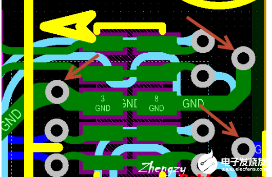 信号换层的过孔附近放置一些接地的过孔,以便为信号提供最近的回路。