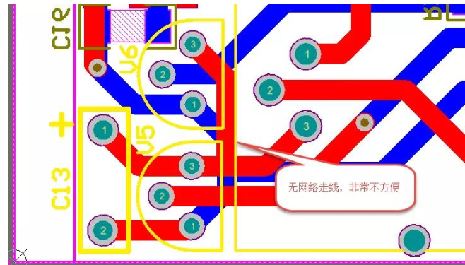 答:如图1所示,很多Protel老工程师一般习惯直接在PCB中绘制无网络的导线条进行pcb设计,往往是只有设计工程师自己比较清楚连接关系,而对后期维护的工程师会造成相当大的困扰。那么如何给无网络的PCB添加网络编号呢?