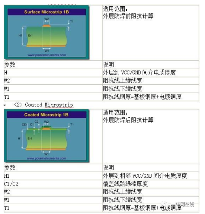 下图是表示微带线(Microstrip)的单端阻抗计算方法: