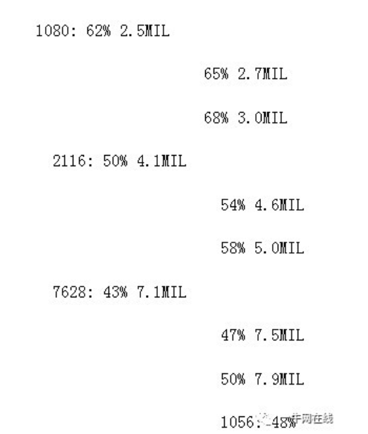 线路层与线路层间介电层厚度,与阻抗值成反比。
