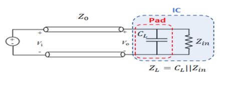 集成电路上的负载电容是输入引线和最近的参考平面之间的寄生元件。换句话说,连接到组件和传输线的输入焊盘将看到一个与公共接地基准点并联的电容(假设传输线和IC共享同一接地层)。
