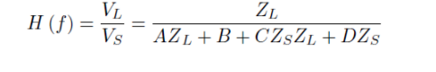 现在,将这些值插入具有定义的源阻抗和负载阻抗的两端口网络的传递函数的以下通用公式中(注意,负载阻抗如上所示):