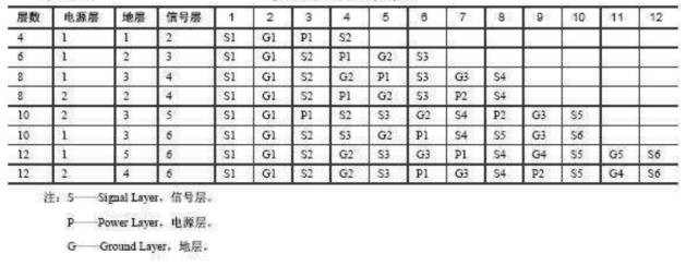 下表给出了多层板层叠结构的参考方案,供参考。