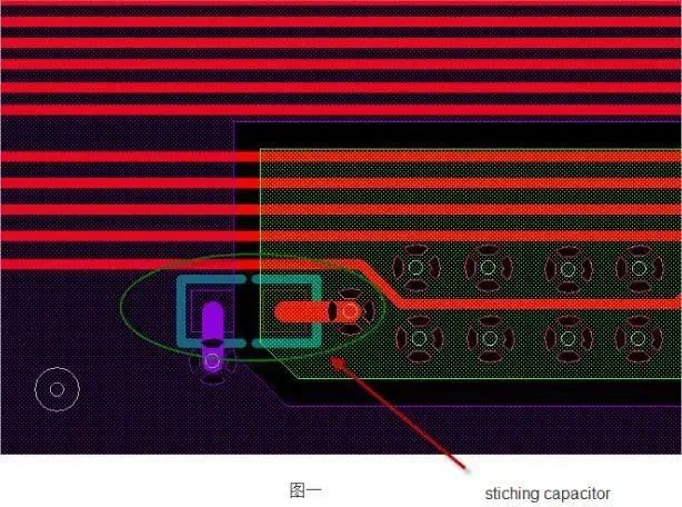 如果在PCB设计中不可避免的出现了跨分割,又该如何处理呢?这种情况下,需要对分割进行缝补,为信号提供较短的回流通路,常见的处理方式有添加缝补电容和跨线桥接。