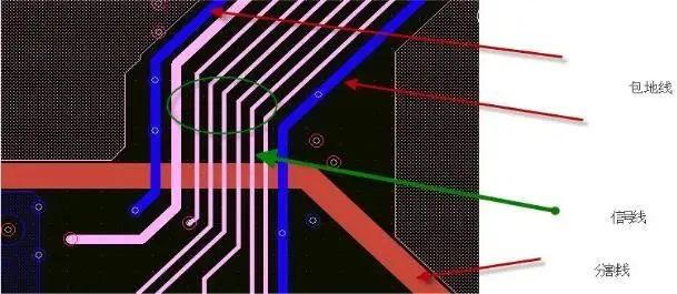 常见的就是在信号层对跨分割的信号“包地处理”,也可能包的是其他网络的信号线,这个个“包地”线尽量粗,这种处理方式,参考下图。