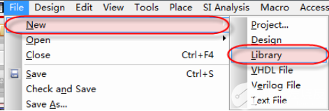 第一步,点击File→New Library,新建一个库文件,做为自己的封装库,如图2-61所示;