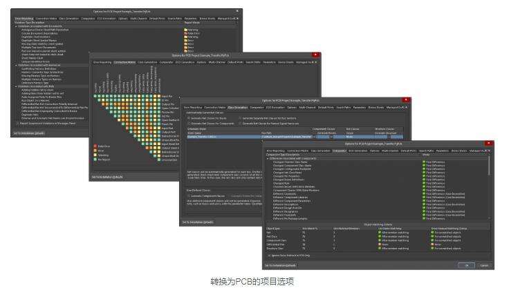 如果已经确定了电路板的PCB形状,尺寸和层堆叠,则可以立即进行设置。如果您现在不想执行这些任务,请不要烦恼,您可以在以后更改电路板的形状,尺寸和叠层(请参见下面的步骤4)。通过编译SchDoc,原理图信息可用于PcbDoc。编译过程包括验证设计并生成几个项目文档,以便您在转移到PcbDoc之前检查并更正设计,如下所示。强烈建议您此时检查并更新用于创建PcbDoc信息的项目选项。