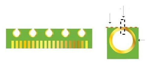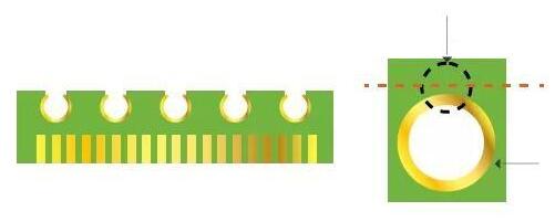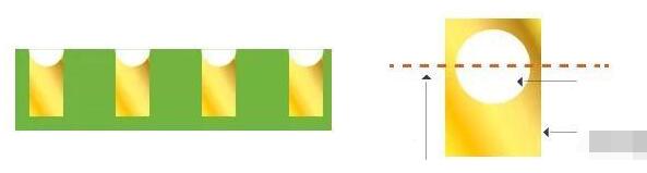 通过对于PCB电路板边缘的孔或通孔做电镀石墨化。切割板边以形成一系列半孔。这些半孔就是我们所说的邮票孔焊盘。