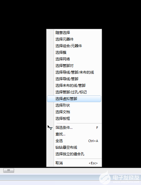 也可以在我们无任何操作或者无任何选中对象的情况下,在PCB的空白处单击鼠标右键的到了图3-29所示的快捷菜单。在弹出这个菜单里面我们可以进行粗选一下要选择的对象的种类,如果要细选的话,就需要回到图3-27的界面去选择过滤器进行筛选了,这里是可以做详细的选择。