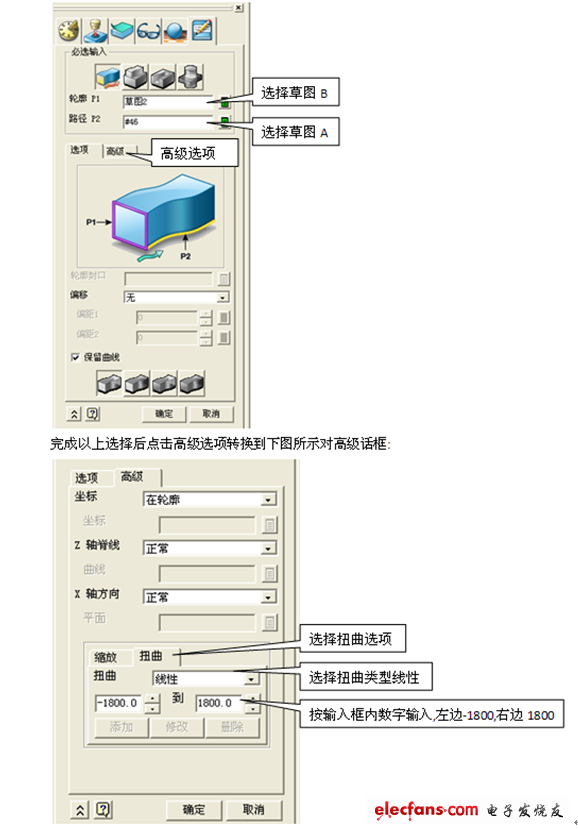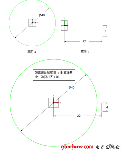 1. 使用草图功能 ,选择XY平面分别绘制草图A及草图B: