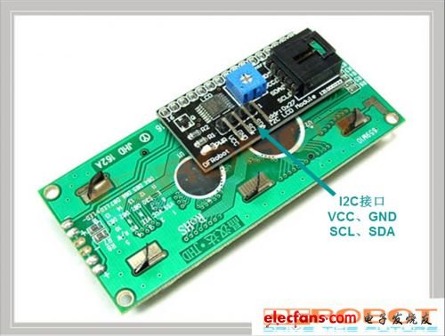Arduino 328控制器端口实在是有限,加几个传感器、SD卡啥的,就没有端口了,还想接个1602液晶显示,怎么办?DFRobot公司开发的集成了I2C接口的1602LCD就解决了上述问题,利用I2C通讯,只需SDA、SCL、GND和VCC四根线就可以实现数据显示,还可以挂其他I2C设备。