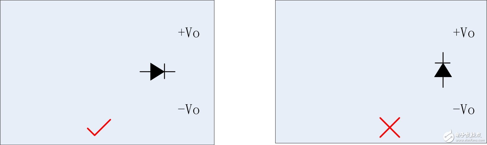 图3 正确与错误的二极管放置方向