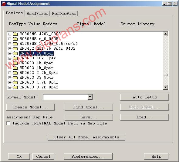 3, 直接在DevType Value/Refdes 中选择要设定Model 的器件或直接在板子上点选要设置Model的器件;