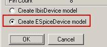 在出现对话框中选择Create ESpiceDevice model,点击OK