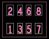 这里要注意要看零件的pin的排列,1 2 3 4 5 6 7 8,就是: 1 和2 是一个电阻,其它同理所以如果就是普通电阻电容那就更简单了.