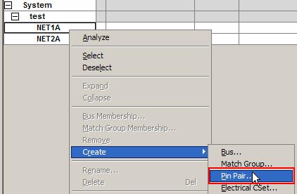 4, 建立需要等长的Pin Pair, 右键点击需要建立Pin Pair 的Xnet