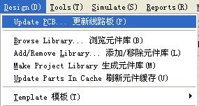 回到原理图的界面,单击主菜单Design ==> Update PCB如图: