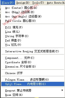 先确定要走在内电层的网络,再单击主菜单Place, 选择