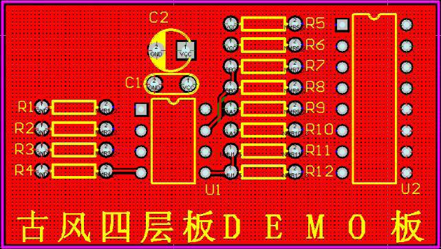 在PCB内层设置完毕后,我们要来查看内层是否正确,当然,最先是用眼睛来查看整个板了。下面,我们来看看下面这个图: