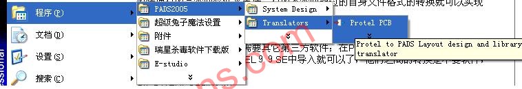 这个转换是要软件来实现的,PADS2005的安装后就自带了这个软件,所以再此也不详解了!详见下图: