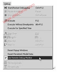 进入Proteus的ISIS,鼠标左键点击菜单“Debug”,选中“use romote debuger monitor”,如图所示。此后,便可实现KeilC与Proteus连接调试。