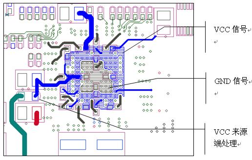 6. 40mil以下小电源电路组 => 有线宽等需求;尽量以表面层完成,将内层空间完整保留给信号线使用,并尽量避免电源信号在BGA区上下穿层,造成不必要的干扰。