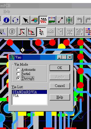 Ans:由pad 拉出走线后按下mouse 右键'选择via type, 将会出现下列图示,选择将使用的via mode及via,当你下次再打via时它会沿用上一次的via 选项