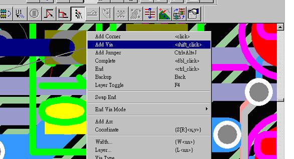 6. pcb 的设计若为HDI ,via需打在pad上,则可按下mouse右key弹出 menu ,select add via 或按shift_click 使via打在pad 上