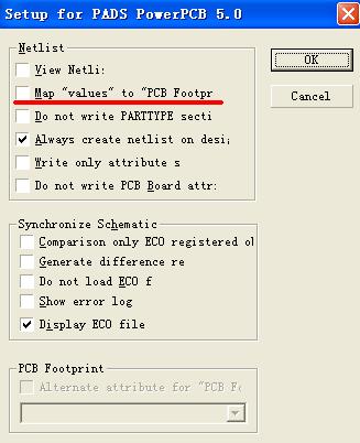 1. 填写ORCAD的封装,即Footprint,此处必须填PowerPCB库中的Decal,而不是Part。