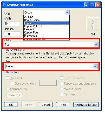 (3) 可调整铜箔所在层面与指定铜箔导通 NET