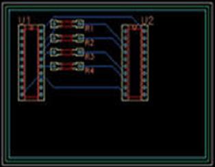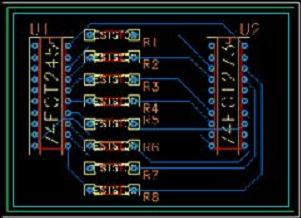 为了保证图 4 中的器件 U1、U2、R1、R2、R3、R4 所对应的物理器件(Geometry)在设计 A 和设计 B的印制板上位置相同,将设计 B 的印制板 Geometry(Board)由设计 B 的 Design_geom 路径下拷贝到设计A 的Design_geom 路径下,然后在 Librarian 模块对其进行修改。完成所有功能后,存储并退出。